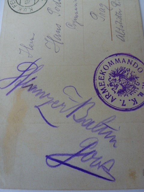 Original autograph,at the back of a postcard with his image,from K.u.K. Generaloberst Karl Freiherr von Pflanzer-Baltin.