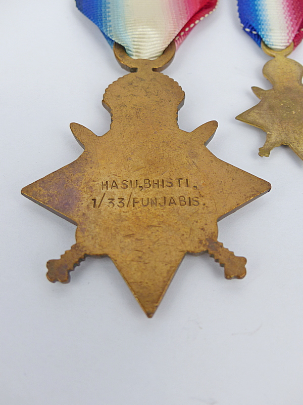 The medal is in the name of; Hasu, Bhisti, 1/33 / Punjabis.
