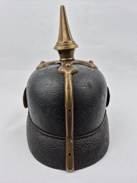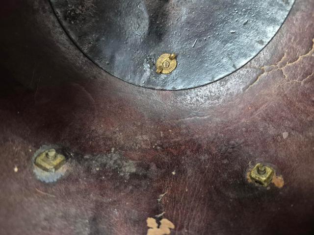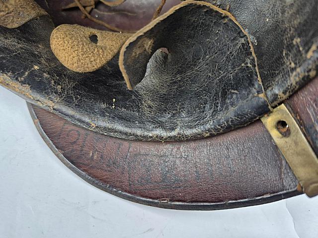 The helmet has various regimental stamps indicating where it was once used: TB18 (Train Battalion 18), TB25 (Train Battalion 25), IR116 (Infanterie-Regiment Kaiser Wilhelm -2.Großherzogliches Hessisches- Nr. 116).