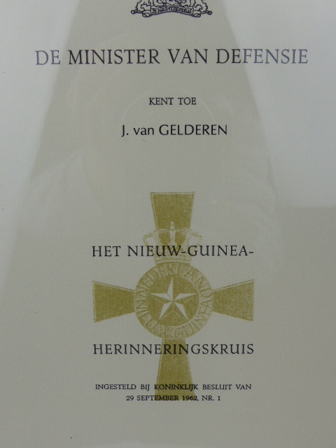 Oorkonde op naam van het Nieuw-Guinea Herinneringskruis.