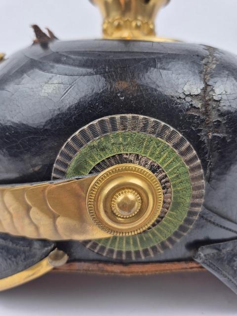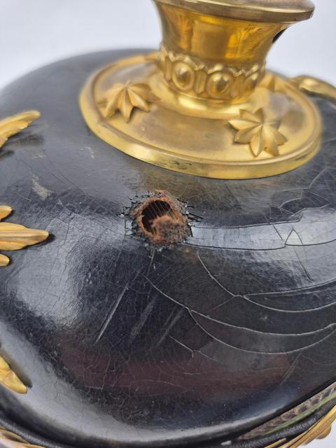 Saxon Infantry Pickelhaube for officer with bullet hole
