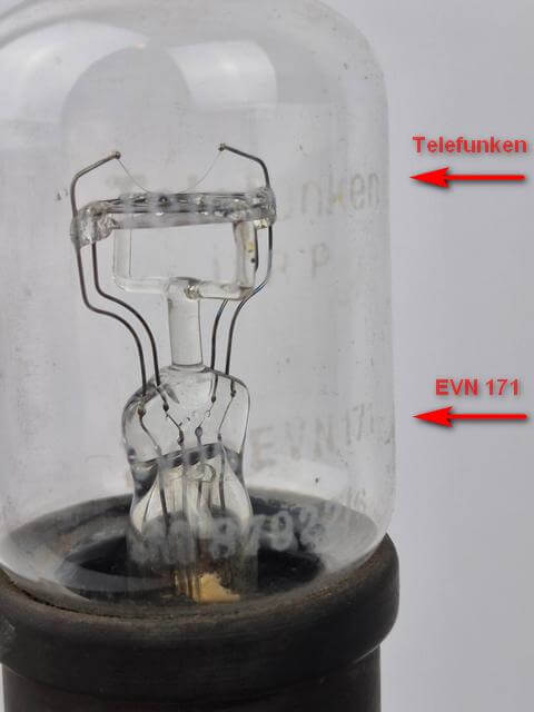 De andere kast met twee lampen bovenop, de bekende en als zodanig ook gemerkte Telefunken, type EVN 171 lampen.