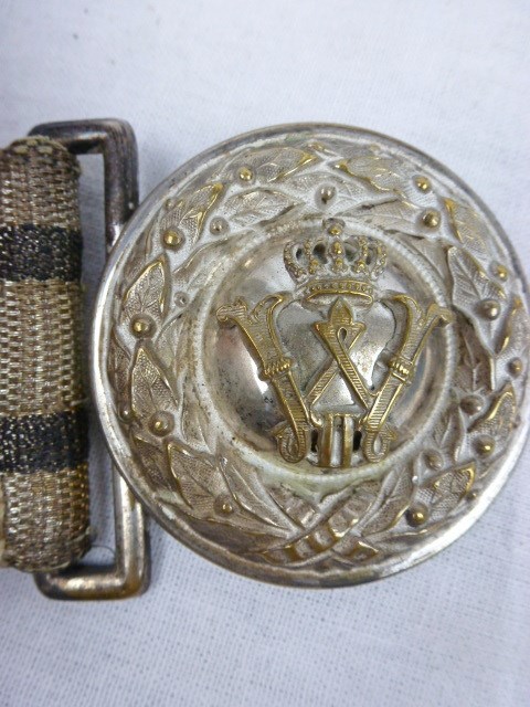 Feldbinde voor een Pruisische officier van Garde-Pionier-Bataillon, Garde-Füsilier-Regiment, en andere regimenten met zilverkleurige knopen.