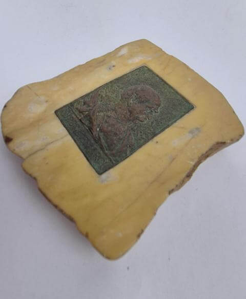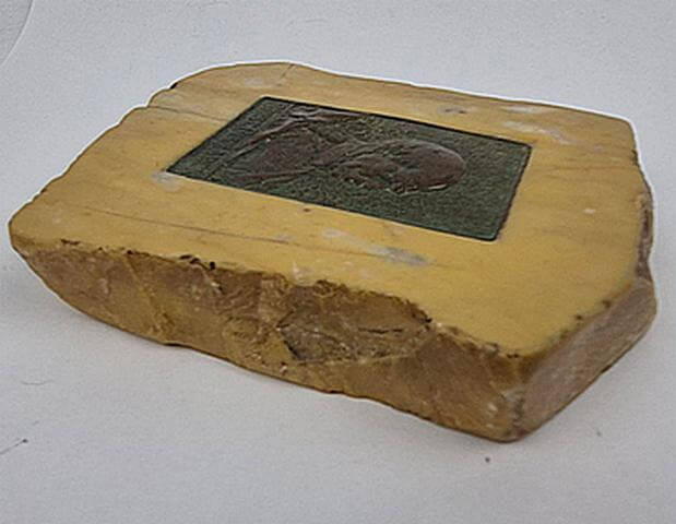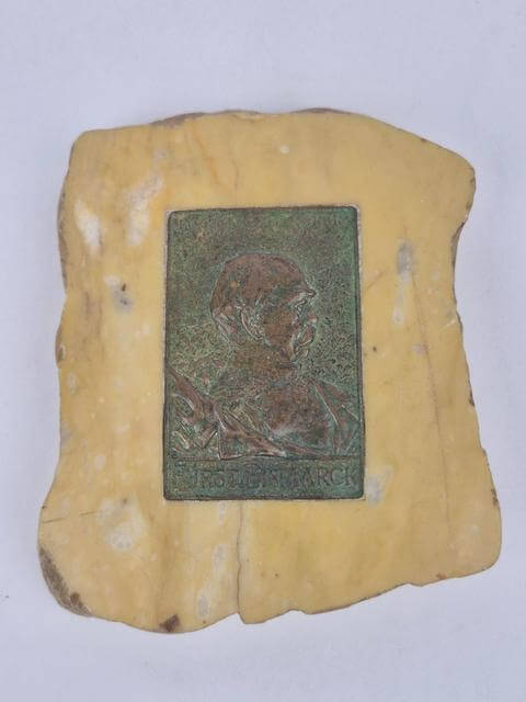 Bronze medaljon in natuursteen.