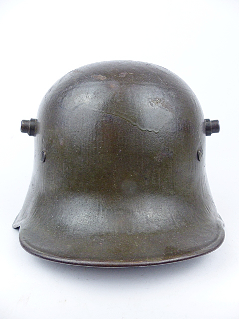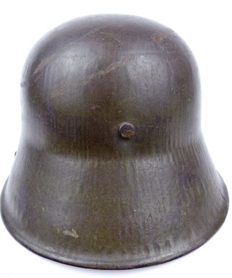 De staalhelm heeft nog zeker 90% van zijn originele donker olijfkleur.