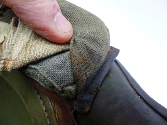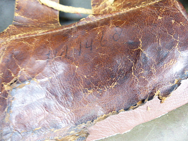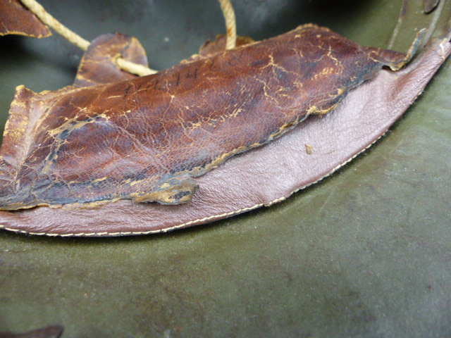 Deze flappen zijn ooit afgescheurd en decennia later hersteld ( de ring is voorzien van nieuwe lederen flappen en daar zijn de oude aan bevestigd).