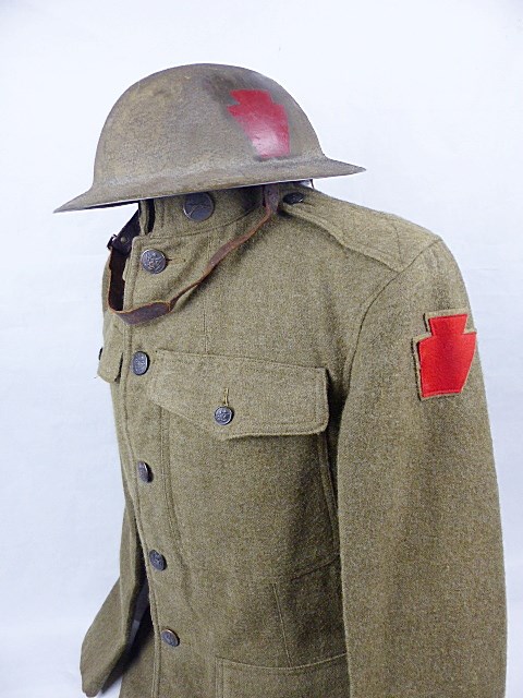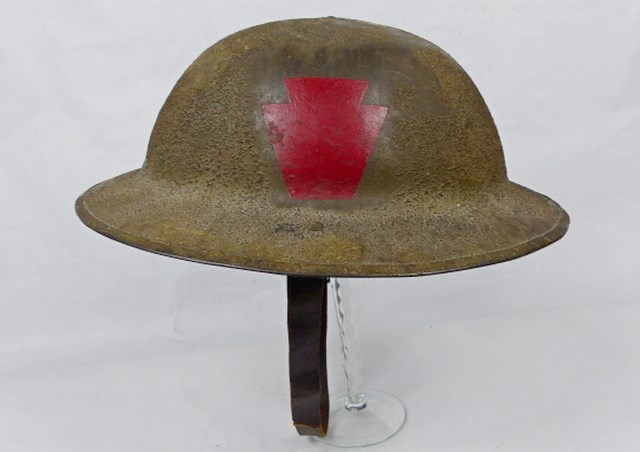 Jasje en helm voor een korporaal hoefsmid van de 28e Infanterie Divisie, Keystone / Bloody Bucket Division.