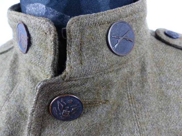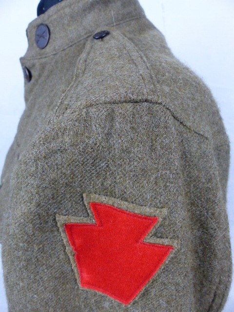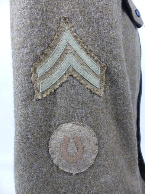 Compleet met de Collar-Discs op de kraag , linker arm het embleem van de 28e ID en rechterarm korporaalstrepen en hoefsmid embleem.