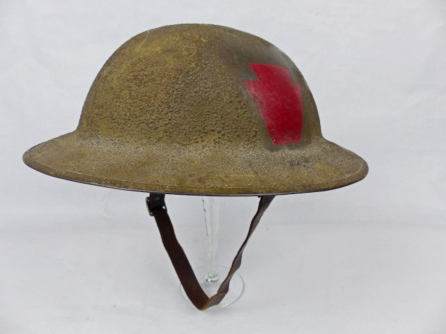 De helm is een Britse Brodi die destijds bij aankomst van de US troepen verstrekt is geweest daar de VS de eigen helmen nog niet uit productie had.Er zijn circa 1,5 miljoen Britse helmen verstrekt geweest aan de eerste Amerikaanse troepen in Europa.