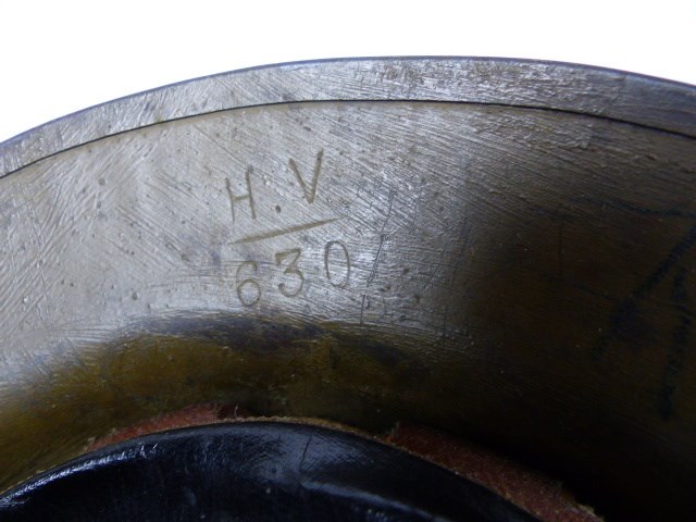 De helm is in zeer mooie conditie met "sand-finish" en voorzien van fabrikantstempel van Brodi en is gemerkt H.V.630.