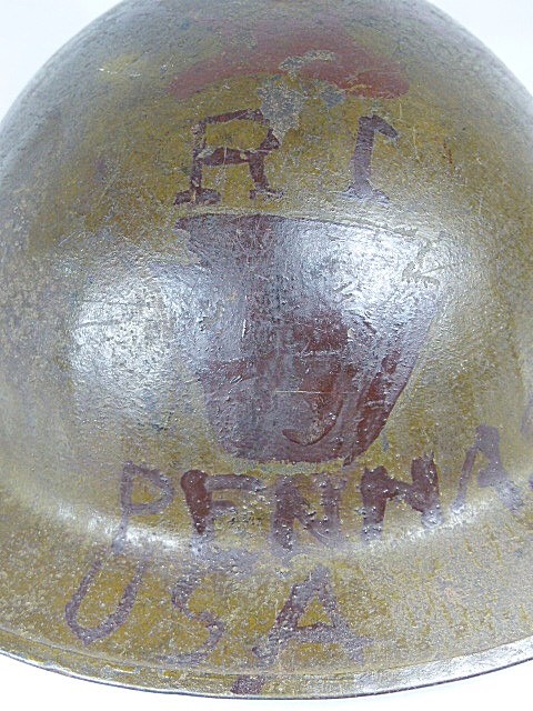 Deze helm betreft een Brits exemplaar ( Brodie) waarvan bij de landing van de Amerikanen in Frankrijk 300.000 stuks zijn verstrekt daar de troepen nog geen eigen helmen hadden bij vertrek uit de USA.