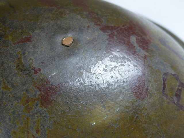 De helm is aan de binnenkant voorzien van een fabrikantstempel ( Brodie ) en initialen van de drager.