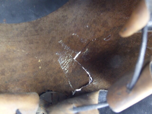 De helm heeft helaas wel een scheur aan de zijkant opgelopen, zie foto’s en het stiksel van de voorklep is vergaan.